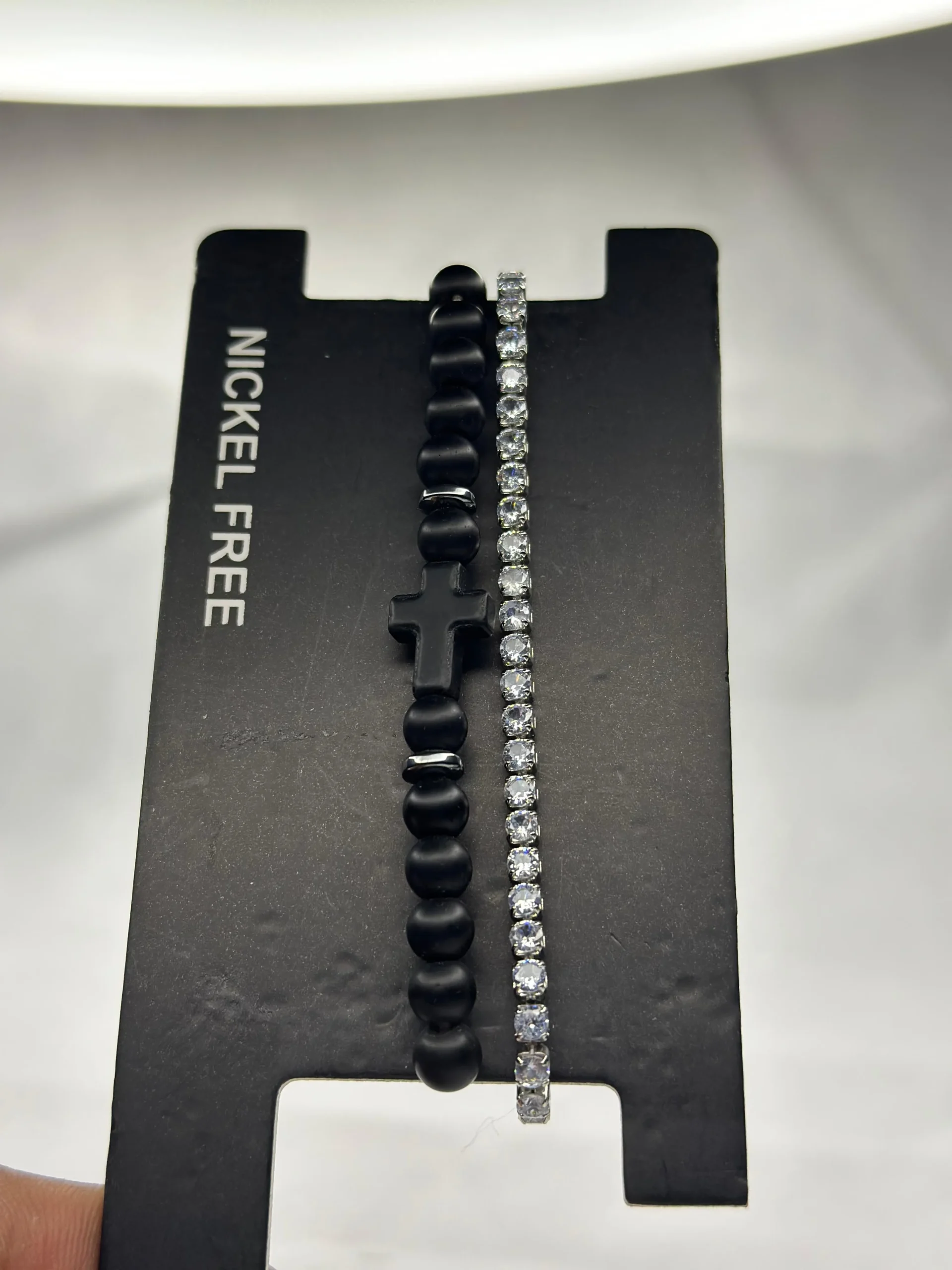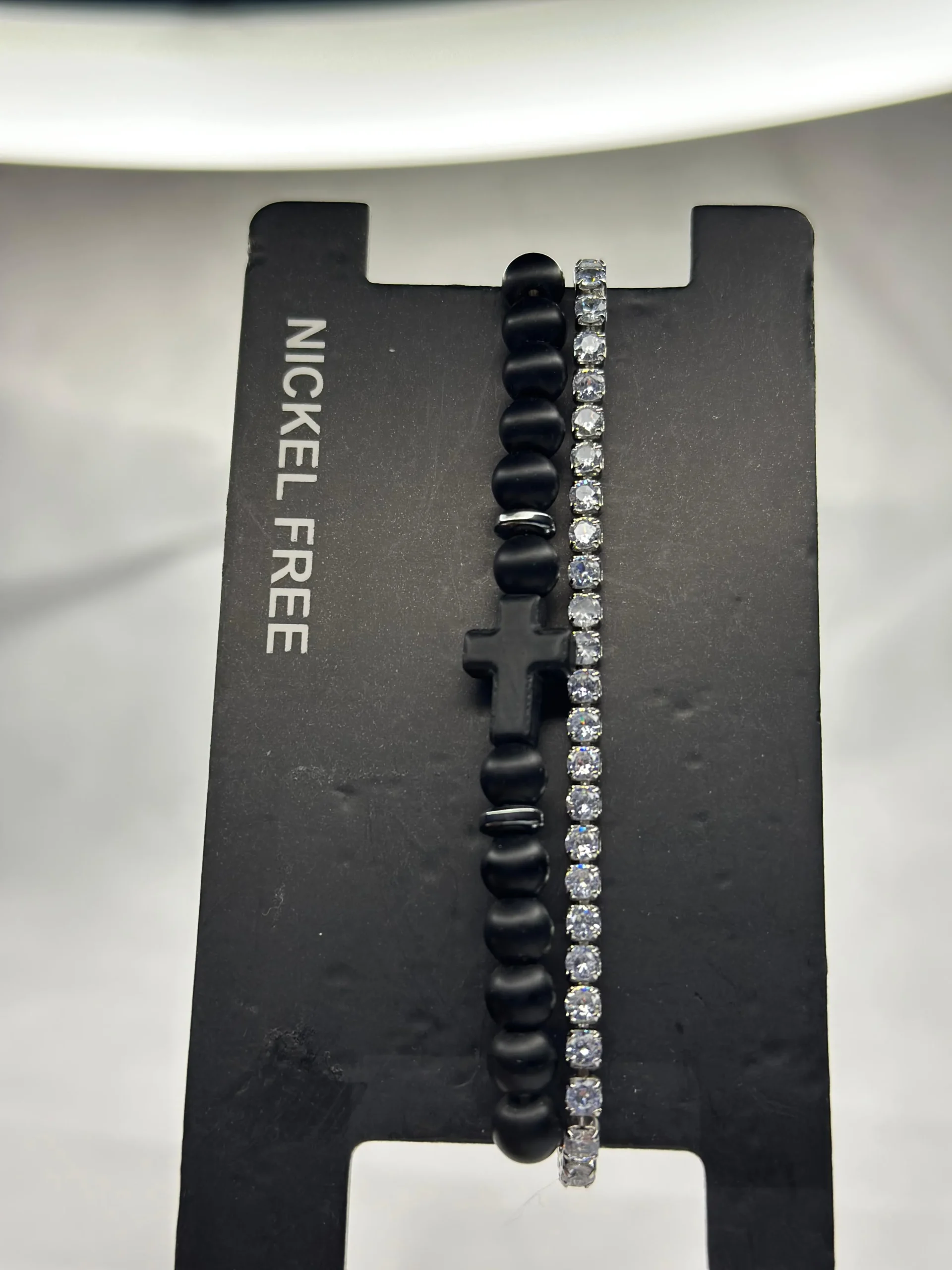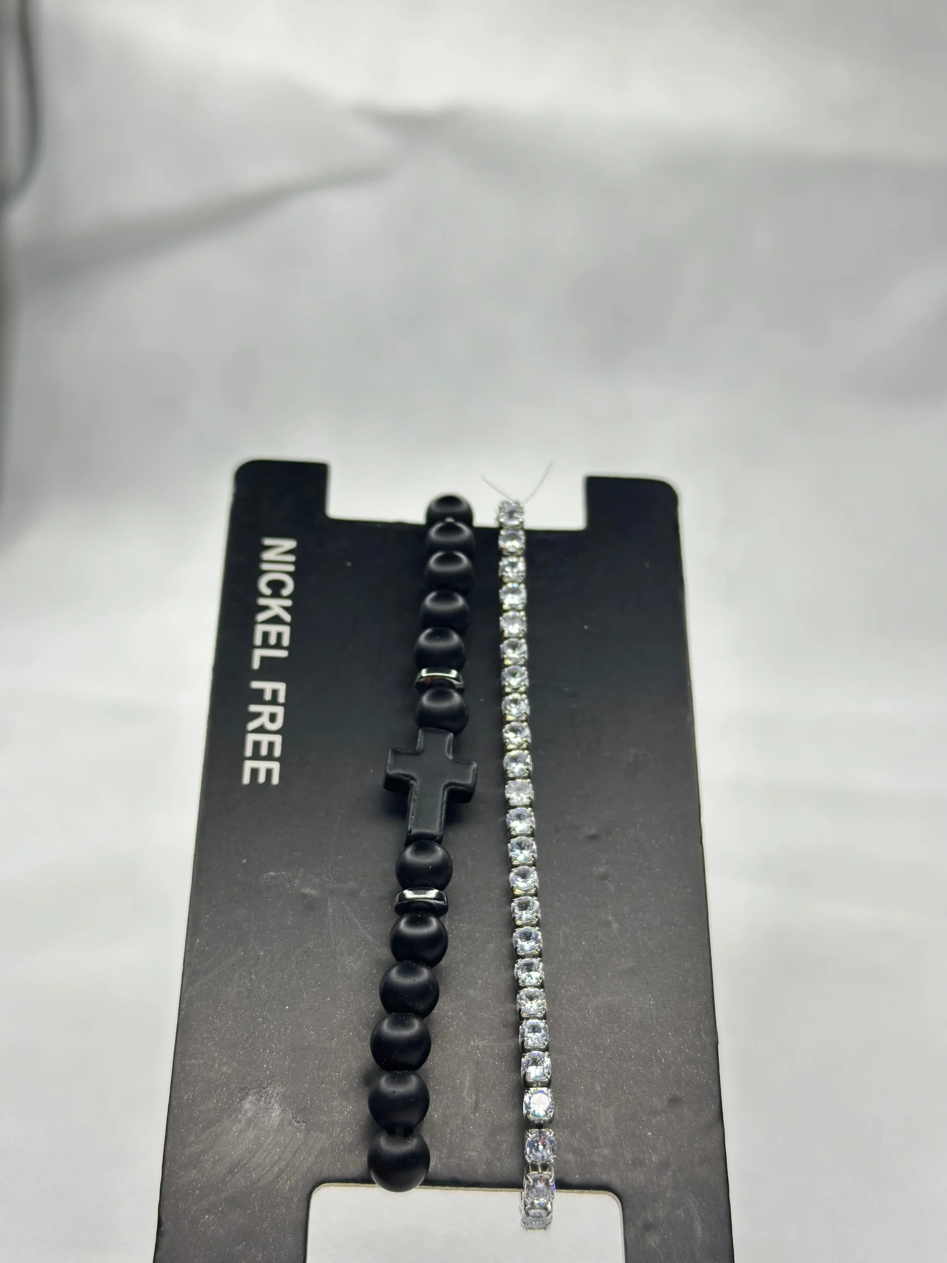 - Spiritual Strength: Featuring smooth matte black beads and a central cross-shaped charm, this bracelet symbolizes faith, protection, and inner power.